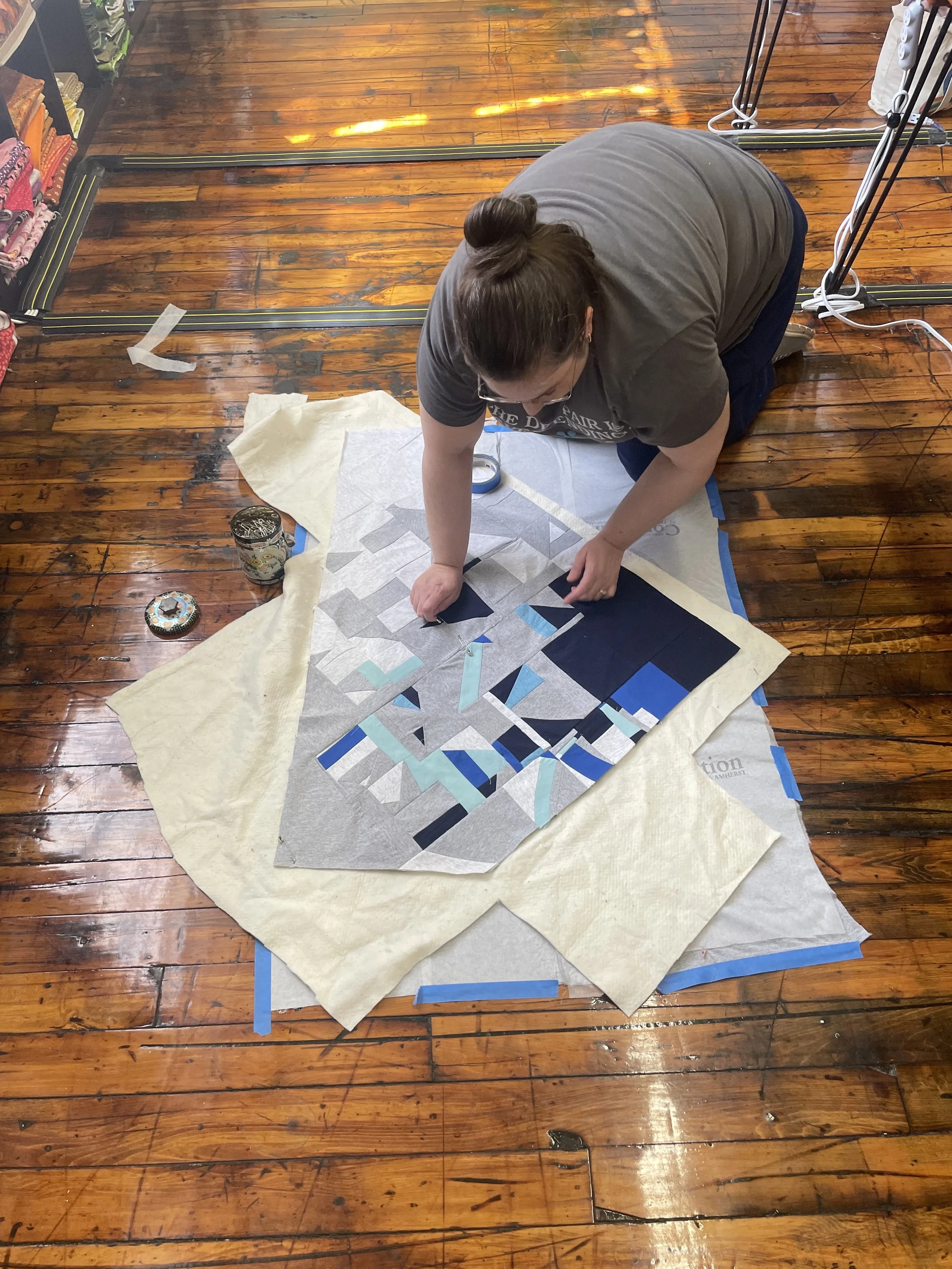 Quilting is as much about the process as it is about the finished quilt. It is an exercise in exploring one's relationship to navigating entropy: finding narrative and pattern in chaos. Playing with how many possibilities and pieces and colors and textures are before you and empowering oneself to make decisions and be flexible to change.